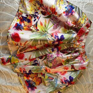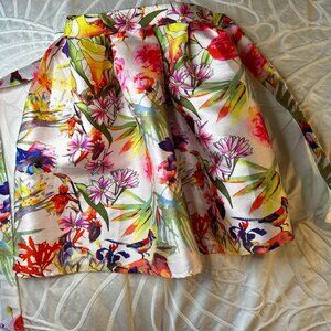 This FABULOUS puffy mini is a BLAST! Fun with vibrant colors made of great quality shinny material. perfect for a fun night out or dinner to a fancy place kind of dress. A bold statement piece that will liven up any closet. Size Medium but has an elastic waist giving it more play both ways. Made of 100% polyester for very easy maintenance. Don't pass this cute number up.. xo
