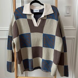 Mediumwell Geometric Pattern Oversize Wool Sweater - Size S - Korean Fashion
