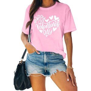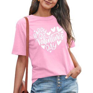 Meesheep Womens Pink Cute Love Hearts Pull On T shirts Valentines Day Gifts Tops