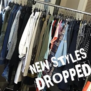 @topgeartrekker hello!! I can do $30 on the MK dress shirt. I do have another one listed that is large but it’s not a slim fit. In jeans I have a 34/32 black wash Kenneth Cole slim straight leg, an awesome pair of AG straight leg jeans in 34/32, and a fun pair of bootleg jeans from MEK in 34/32. Check out the rest of the closet and see if you like any of those pieces. Cheers!