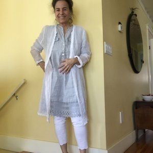I am a natural gal who is very partial to natural-fibre clothing, so this is mostly what you'll find in my closet. I lean towards 100% cotton, linen, rayon, silk, wool, cashmere, and viscose garments. I won't buy anything unless I can see it's fibre content clearly listed and I am to do the same. I like botanical prints, tone-on-tone patterns, and I have a sweet spot for natural velvet (rayon/silk blend) and anything paisley. Due to illness I lost a lot of weight (went from size 16 down to size 8 but am now back up to size 10, M) and have too many great garments in my closet that no longer fit. Now that you know what I like, please feel free to point me to anything in your closet that might be of interest to me!