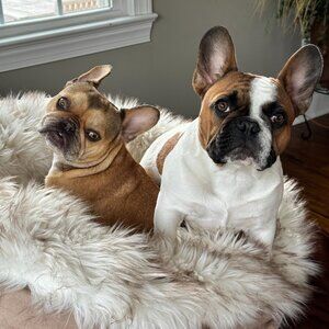 Some of my favorite brands are Banana Republic, Lulus, and Prana. When I’m not chasing good deals or styling outfits, I’m usually chasing after my two French Bulldogs — Stella (the fawn) and Finnegan (the pied) 🐾