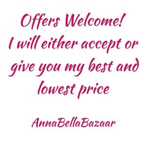 Open to offers so please feel free to make an offer on any of my items at any time. I will either accept or respond with my best and lowest price.