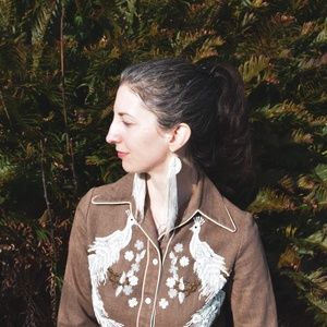 Hi! I'm B! I live in a small town in BC and work in Vancouver. When I'm not wearing flannel, I love fancy sweaters and am basically always yes if it looks like your grandma might have worn it when she rode in a parade. I also make fibre arts jewelry inspired by nature stuff (though a lot of it comes out looking like fruit vaginas, oops). Follow me mostly for vintage finds that fit a narrow frame, quirky patterns, etc. I may someday sell some hand embroidered and beaded wearables here, so you can also follow me to see that, when it happens.