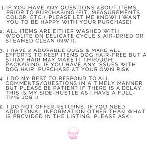 Hi! Let's be honest- I love to shop & I have way too many clothes. I'm selling items from my personal closet or gems I find during my secondhand shopping adventures. Let me know if something catches your eye- I’m always open to reasonable offers! <3
