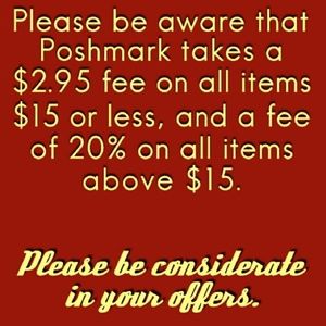 I just wanted to say hello and welcome you to my closet! Please feel free to stop by and take a stroll! If you see anything you like just let me know! I'm more than happy to work with you on both price and shipping. I'm a 5-star rated Posh Ambassador as well as a 1-day shipper. Always nice to meet a new Posh friend!