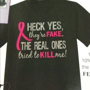 Thank you so much for all the shares!!! And heeeey girl for winning your fight!!! My step mom has the same shirt about the fake ones. I'm a lymph therapist and specialize in BRCA. These shirts are my favorite... you have a whole community out there of (mostly) sisters supporting you and grateful for you!! XO