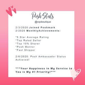 I am so excited! I reached the level of Posh Ambassador in just over 3 weeks of being on Poshmark! Thank you to everyone who has helped me so far!! xoxo