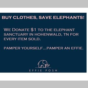 @htheather we are new poshers. Once we have been on here for a month, we’ll send our first monthly donation. We LOVE elephants and what they do at the Elephant Sanctuary. We actually just got their newsletter in the mail today. 🐘🐘😘