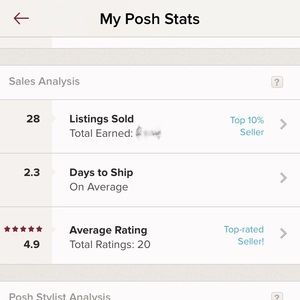 Welcome to Poshmark!! There are amazing Poshers working to support one another in the name of fashion and style. I hope you have fun finding treasures, connecting with followers, sharing the Posh love, and selling special items from your own closet. Good luck and much success to you. I am just a closet away.