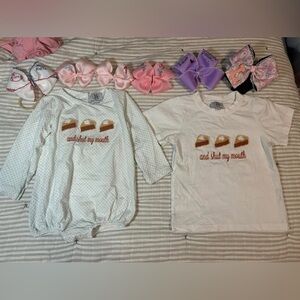 Some of my favorite brands are TBBC, Footmates, Busy Bee Smocks, Worth Repeating Baby & Bows for hair bows, Sunsans, H&M for basics, Little English. Thanks for stopping by! Leave a comment if you’re looking for a certain item and I’ll post a listing here. I have kids from 22y - 1yr so I have nearly every size! I’m big on family matching sets too so I have plenty, just ask to see. Follow me if you like my style… or my kids style bc I have none for myself. I will list my adult daughters clothing,
