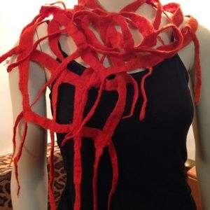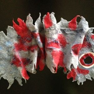 I accept you offer because I feel that you appreciate the handcrafted nature of the felted one of a kind scarves. Plus, the skull necklace is just something else!