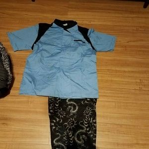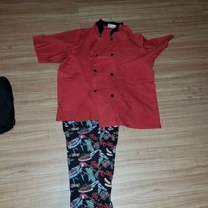 What size is the baby blue chef coat with the pants what’s the size and how do I order them