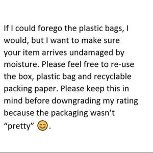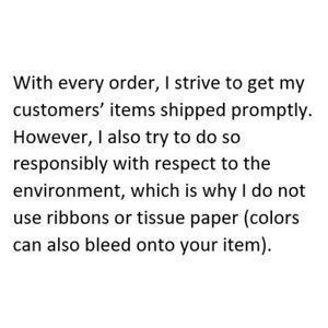 I appreciate & admire your dedication to reduce the footprint of your shipping! I try to be mindful, no bows/ribbons unless I’m re-using, as small a box as is reasonable, switched to ink & acid free, unbleached, packing/moving paper. It’s easy to purchase recycled packing paper, and it’s recyclable. Do you have an eco “tips” listing?