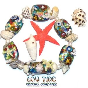 I create beads & other glass goodies on a torch. Then I make jewelry out of my beads and those of my very talented glass artist friends.