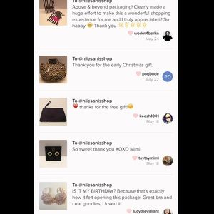 πΉ YOU ARE A LOVE!! MY FRIENDS I SEE ALWAYS CHECK ME OUT TO SEE WHAT I HAVE NEW. THEY ESPECIALLY LOVE β€οΈ YOUR ITEMS. I AM ALWAYS BRAGGING ABOUT YOU BEING MY FAVOURITE PERSON TO SHOP FROM!!πΉπ·πΉ SO, I AM HAPPY TO SEND NEW POSHERS TO YOU. HUGS!! TC π