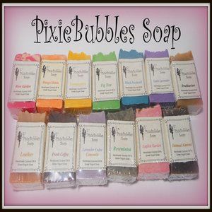 Hi! I'm Teresa, a.k.a. Pixie. I live in Riverview, Florida, USA. I'm selling handmade natural coconut oil soaps and mini soaps. I can customize your mini soap using your Poshmark closet name/logo to use as a thank you gift for your Poshmark customers! Many colors/scents are available. Just message me your questions. I'm happy to work with you to create a one of a kind special gift! EACH MINI IS 0.75 OZ., INDIVIDUALLY WRAPPED.