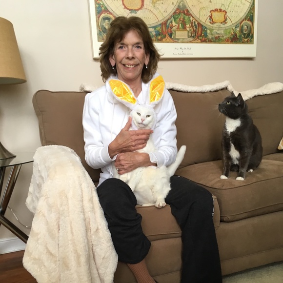 Lol!! You’d think the black cat would run for the hills when he saw what you did to the white cat! Yet he’s looking at you seemingly in wonder of where his set of ears are😆