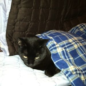 @tcbeap aww youre welcome! I used to have a black kitty, tuxedo look! with white paws, neck and belly. yours reminds me of her. now I have a greyish/brown tabby. :) have a great day!