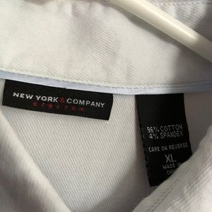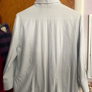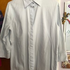 This is a very light blue button down shirt, the buttons are hidden, and has 3/4 sleeves, very comfortable.