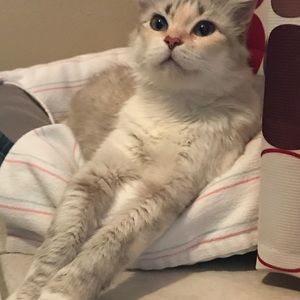 @loyda513 thank you! Can you believe she claimed us? She was a stray and decided to adopt us. She has been fixed and now is the queen of the house. Her eyes are so blue that my son named her Blue.😊