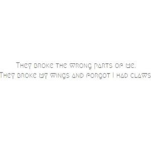 They broke my wings and forgot I had claws."