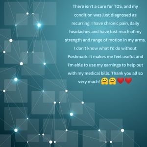 Like you, Poshmark has given me the opportunity to earn some funds while meeting wonderful strong women like you. Cheers to sales, health & POSH BFF's!