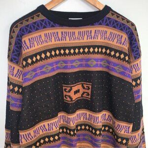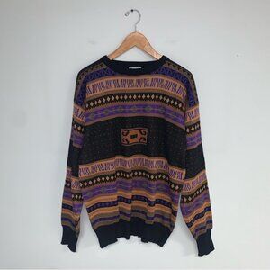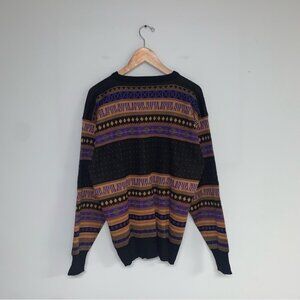 Meister Vintage Sweater Men's Size Extra Large XL Black Purple Wool Knit Jumper