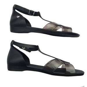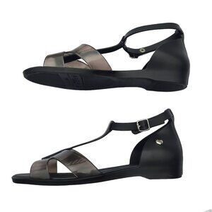 Mel By Melissa Black Jelly Sandals US 8 Ankle T Strap Flats EUR 39
