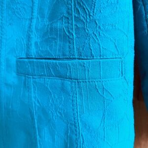 Upgrade your wardrobe with the effortlessly chic Melanie Lyne Blazer, a true vintage gem that blends timeless style with modern sophistication. Crafted in a vibrant turquoise, this size 6 jacket features a sleek 3/4 sleeve design, perfect for transitioning from day to night. The cotton outer shell paired with a polyester lining ensures both comfort and durability, while the jacquard fabric offers a sophisticated texture.