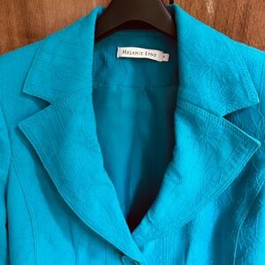 Melanie Lyne BLAZER Size 6 Vintage 3/4 Sleeves Lined Pockets Turquoise Jacket