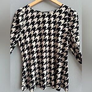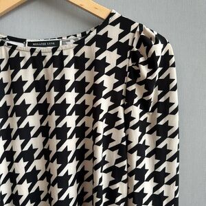 Melanie Lyne | Cream & Black Houndstooth Puff Sleeve Top | Size M
