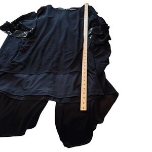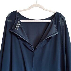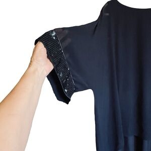 Melanie Lyne Navy Sheath Dress with sheer Overlay/ Sequined cuffs.Size 14 NWOT