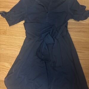 Beautiful shirt dress in a classic navy colour. Dress is in excellent used condition. Similar to the style in the first photo.