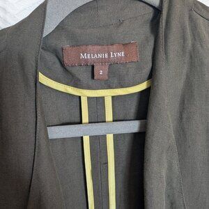 Melanie Lyne Olive Khaki linen silk open front lightweight blazer size 2