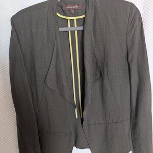 Melanie Lyne, Blazer, Open Front, Silk, Linen, Blend, Khaki, Olive, Green, Neutral, Business Casual, Lightweight, Breathable, Waterfall Neckline, Size 2, summer, spring, fall