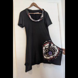 Melanie Lyne, Short Sleeve Flowy Top – Black - Scoop neck - Asymmetrical hemline- Size XS – EUC