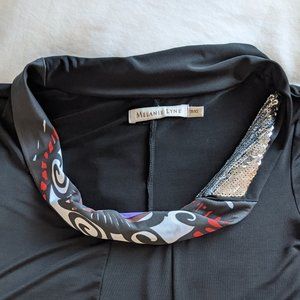 Melanie Lyne Short Sleeve Flowy Black Scoop Neck Top XS/S