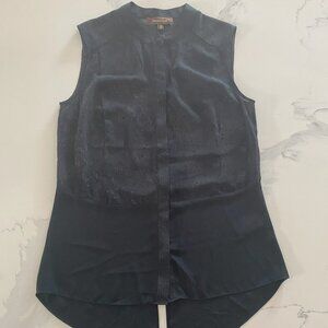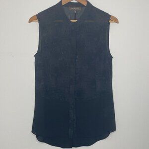 Melanie Lyne - Sleeveless, Black Patterned, Lightweight Top, Size M