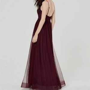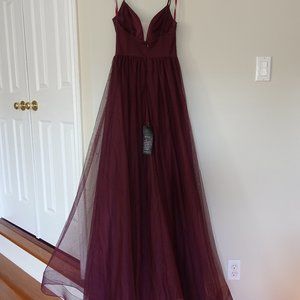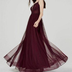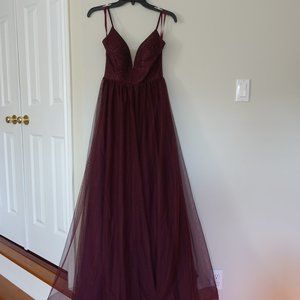 Melanie Lyne ball gown in a deep plum colour with plunging V-neck, rhinestones, and lined.