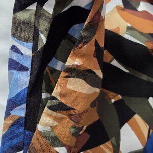 Color: Multi-color botanical print with blue, brown, black, and green.