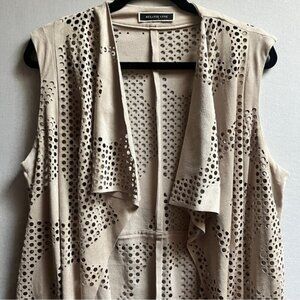 Melanie Lyne brushed suede sleeveless waterfall vest Sz L 22" PTP