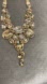 Worn once for a formal event. Very sparkly and eye catching. I got so many compliments on this necklace. It has a good weight to it. Lobster claw closure. Thick chain. Stones are light gold, and amber in color.