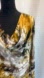 Melanie Lyne yellow brown cream abstract printed long sleeve cowl draped blouse