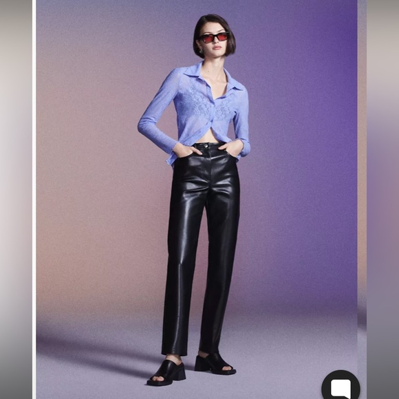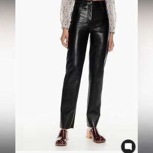 The Melina pant: these are high-rise straight-leg pants with five-pocket styling and a universally flattering fit. They’re made with our innovative Vegan Leather that looks and feels like the real thing. They have an authentic drape and a soft sheen that feels right from day one