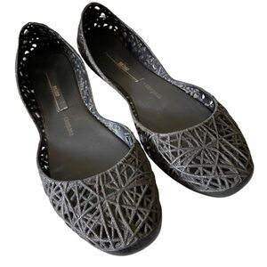 Melissa Campana Zig Zag Jelly Black Sparkle Ballet Flats US 6