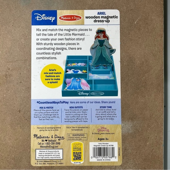 Melissa & Doug Disney Ariel Magnetic Wooden Dress Up Doll *read listing