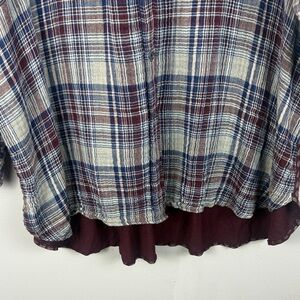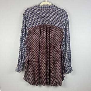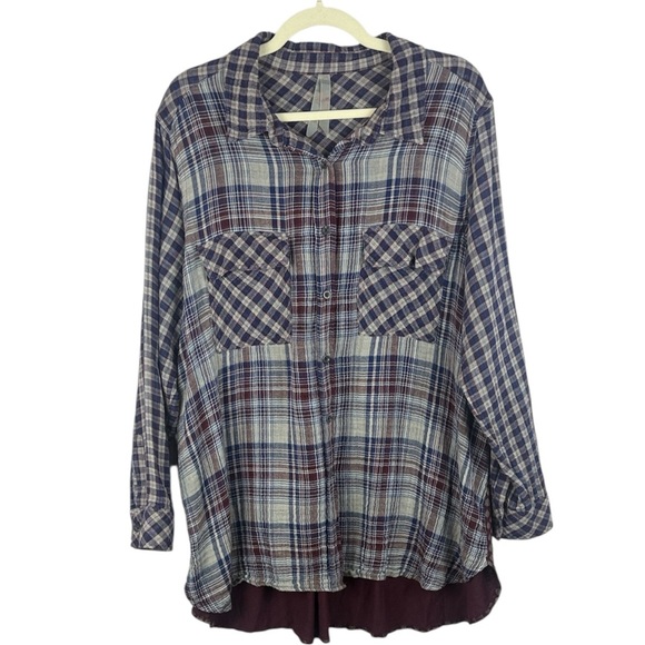 Melissa McCarthy Seven7 Blue Red Plaid Cotton Modal Blend Button-Down 2X Blouse