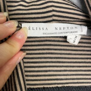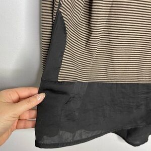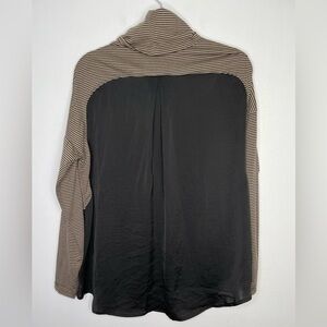 Super flowy and comfortable. Bottom and back part are in a different fabric. High low hem. Measure lay flat: shoulder 20’’ bust 23’’ front length 24,5’’ back length 29,5’’ sleeve length 21''.