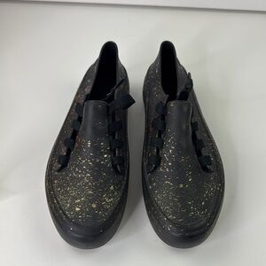 Melissa Women's Ulitsa Black & Gold Splatter Sneakers size 8